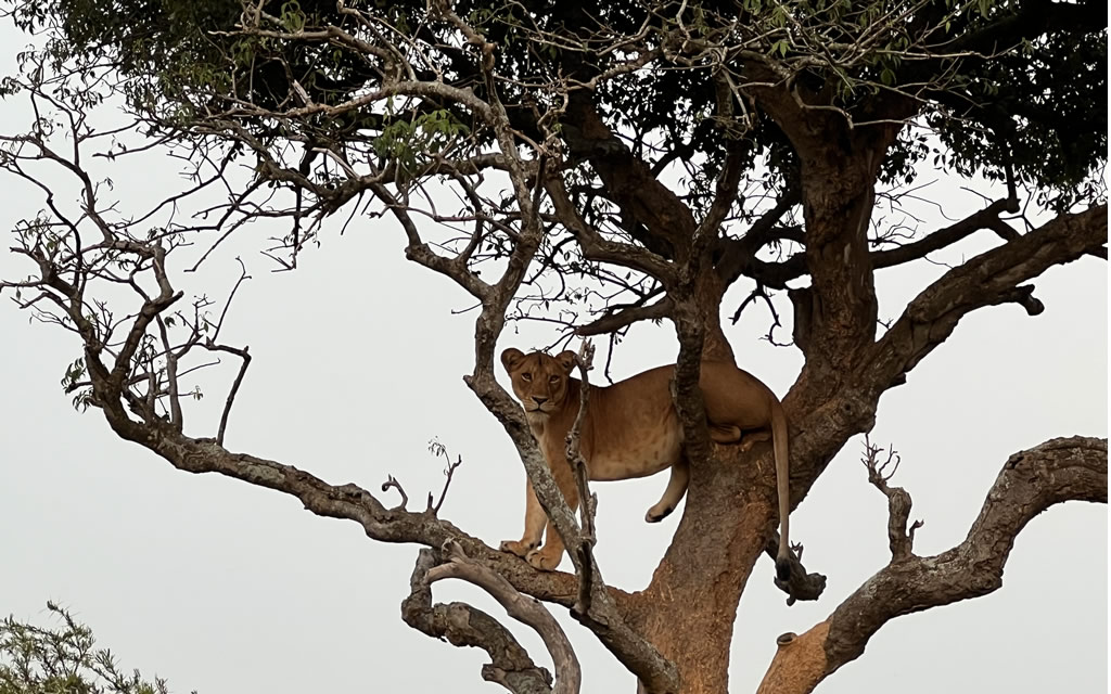 Tree climbing lions during Wildlife safari in Queen Elizabeth National Park.